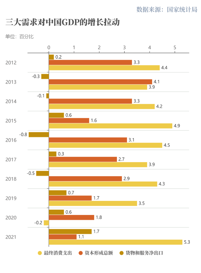十年间,中国经济结构调整取得扎实成效。中国制造业增加值占全球比重从22.5%提高到近30%,高技术制造业和装备制造业占规模以上工业增加值比重分别从2012年的9.4%、28%提高到2021年的15.1%和32.4%;最终消费支出对经济增长的贡献率2021年达到65.4%,比2012年提高10个百分点,成为经济增长第一拉动力;固定资产投资年均增长9.4%,有效支撑经济平稳运行,在促进经济增长、优化供给结构中的关键作用不断增强。