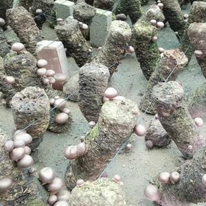 进了大棚,姜逢学和妻子脱掉外套,一人拿起一个大筐,分头钻进棚里,手脚麻利地忙活起来。“菌盖开到三指宽的就算长成了。”他一边走一边用目光扫视着地面上的菌棒,见到成熟的蘑菇就蹲下身来,把蘑菇从菌棒上摘下,放到手边的筐里。