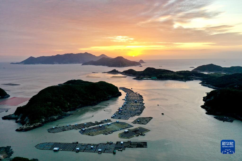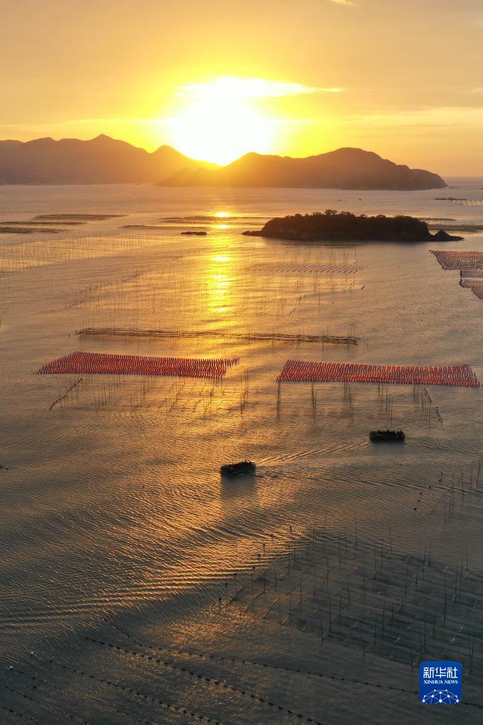 金秋时节,福建省海洋养殖大县霞浦县海域上一派繁忙的秋收景象。每天的早晨和傍晚是渔民出海劳作、归港返家的繁忙时段,渔船在广阔的海洋牧场里穿行游弋,收获紫菜、生蚝等水产品,描绘出一幅幅美丽的大海渔耕图。