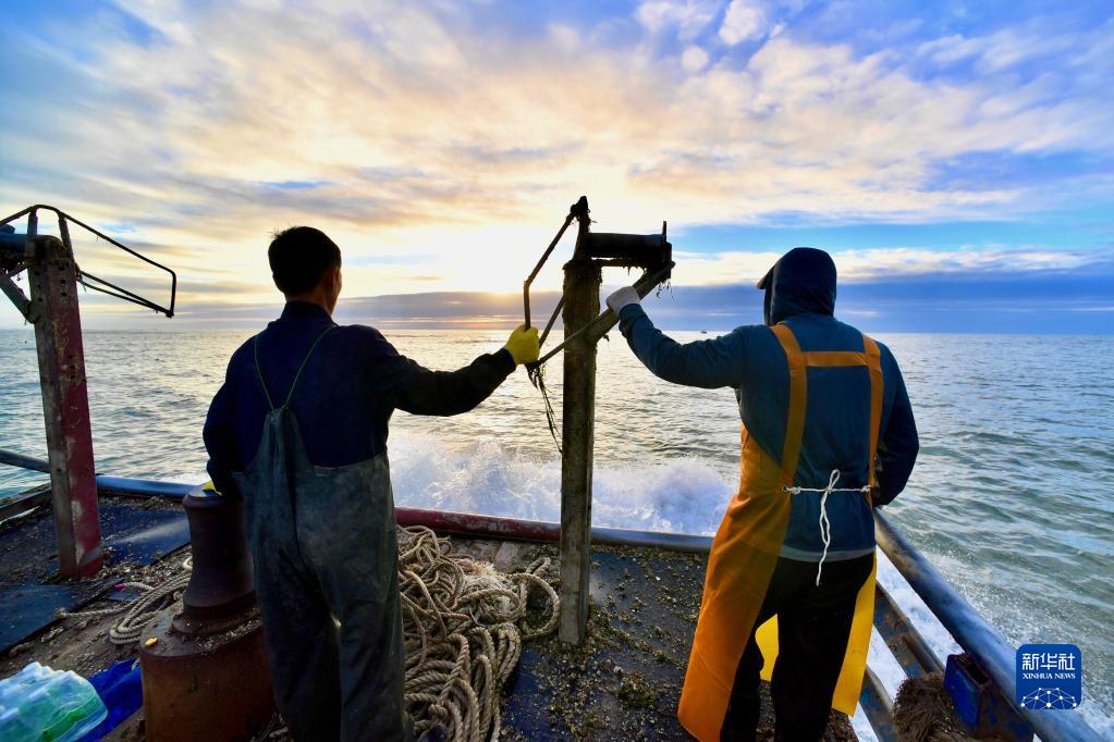 金秋时节,福建省海洋养殖大县霞浦县海域上一派繁忙的秋收景象。每天的早晨和傍晚是渔民出海劳作、归港返家的繁忙时段,渔船在广阔的海洋牧场里穿行游弋,收获紫菜、生蚝等水产品,描绘出一幅幅美丽的大海渔耕图。