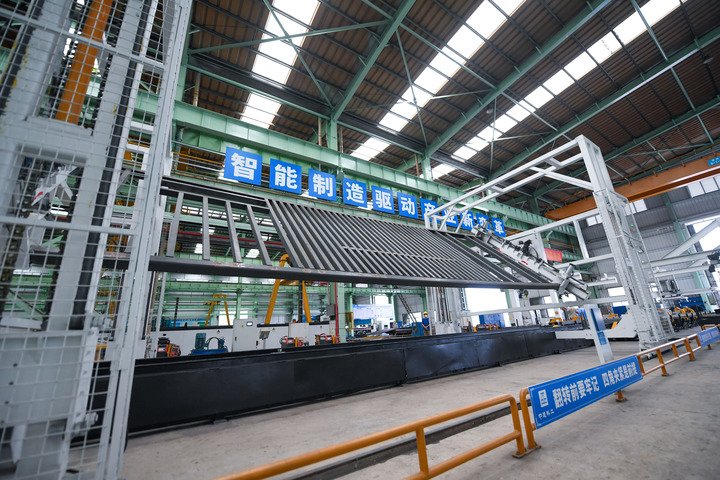 在广东省惠州市,由中建科工绿色科技公司自主研发建设的智能工厂实现了大规模、批量化生产模块化的钢结构箱体产品。(2022年9月28日摄)新华社记者 毛思倩 摄