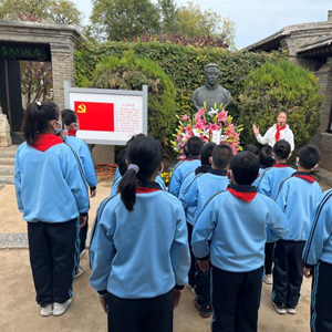 这是在大黑坨小学“红领巾”解说员的带领下,大钊班学生参观故居。采访对象供图