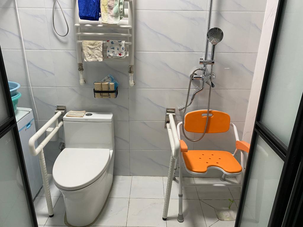 李齐鸣家中卫生间进行适老化改造后安装了各类设备。 新华社记者 尹思源 摄