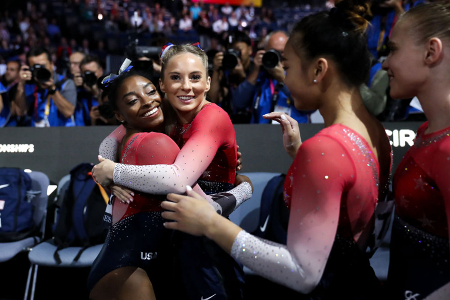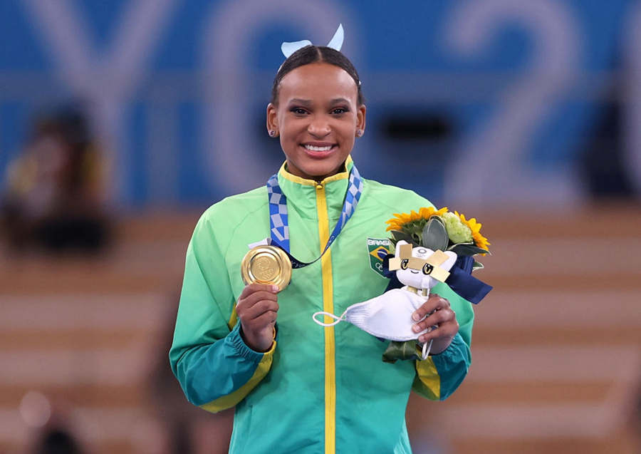 安德拉德在东京奥运会女子跳马项目颁奖仪式上