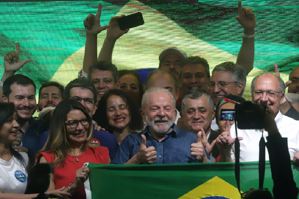 10月30日,卢拉(前中)在圣保罗参加庆祝活动。新华社发(拉赫尔·帕特拉索摄)