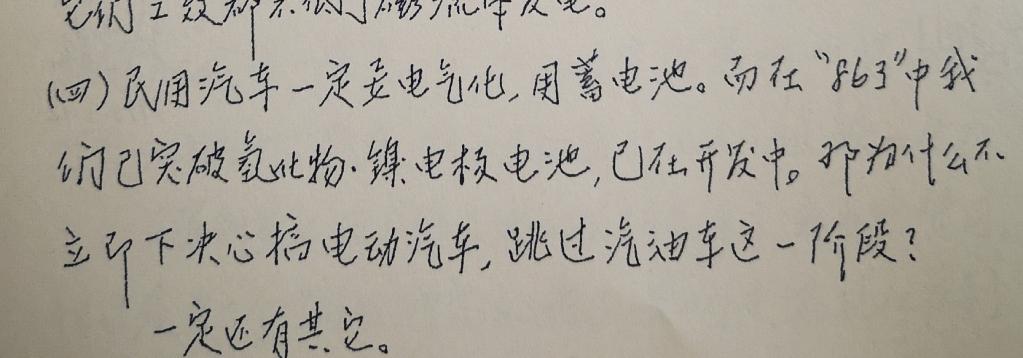 信中说,“在此形势下,我们绝不应再等待,要立即制订蓄电池能源的汽车计划,迎头赶上,力争后来居上。”