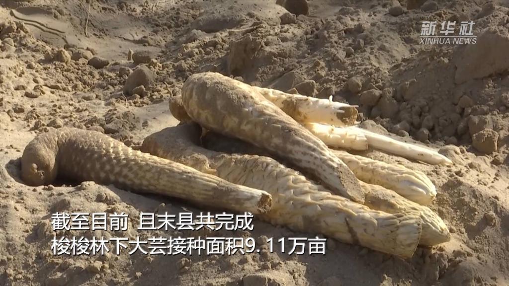 眼下正是新疆且末县2万多亩大芸采收时。漫漫沙海中,一株株大芸成为农民从黄沙中淘到的“黄金”。