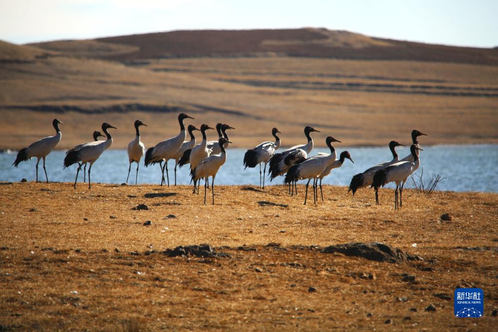 这是11月1日在云南大山包黑颈鹤国家级自然保护区拍摄的黑颈鹤。新华社发(吴太平 摄)