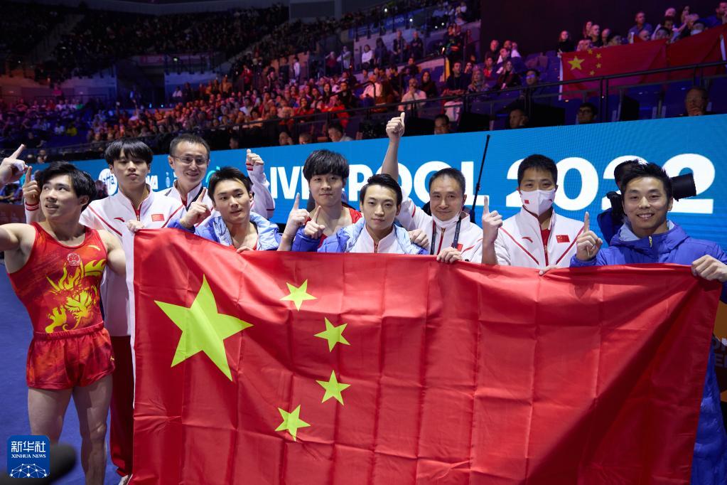 当日,在英国利物浦举行的2022体操世锦赛男子团体决赛中,中国队获得冠军。
