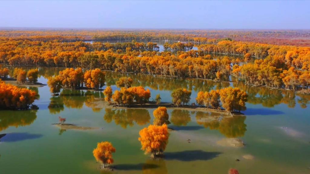 眼下,我国最长内陆河塔里木河沿岸近1700万亩胡杨林迎来了一年中最美的时节,浅红深黄,好似浓墨重彩的油画。