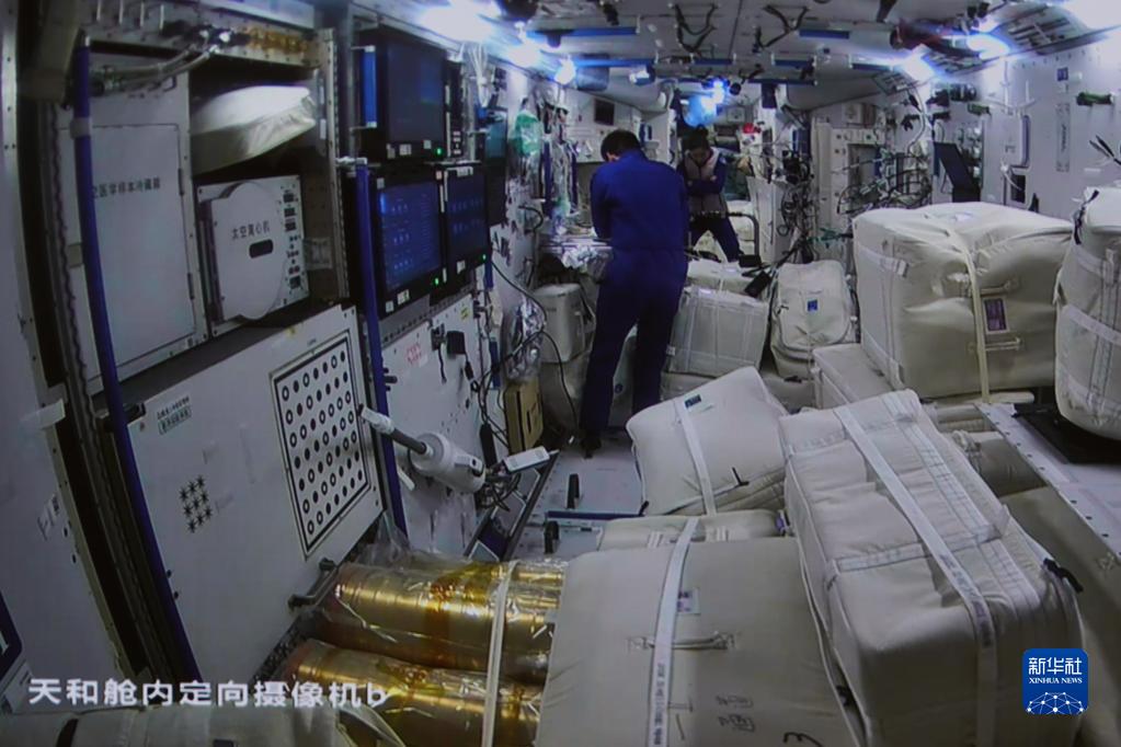 11月3日在北京航天飞行控制中心拍摄的梦天实验舱完成转位后天和核心舱内的情况。 新华社发(孙丰晓 摄)