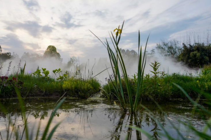 重庆市梁平区双桂湖畔三峡竹博园内的小微湿地景观。新华社记者刘潺摄