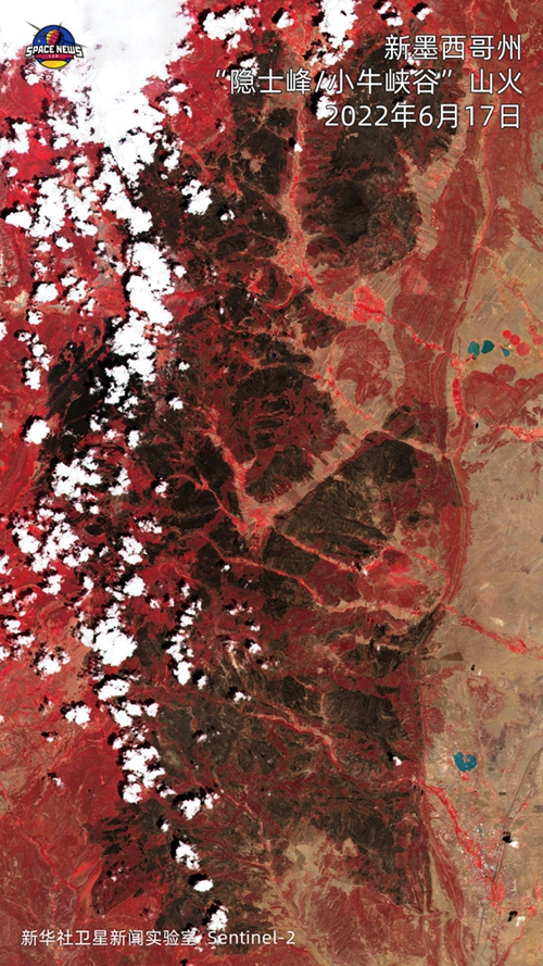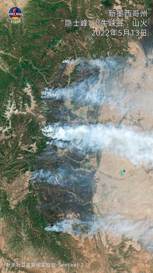 美国林业局每年人工引发约4500次山火,但2022年两起此类作业失控,引发大规模山火,“隐士峰”山火和“小牛峡谷”山火合并后,成为该州历史上最大规模山火,合计烧毁1300平方公里,面积相当于整个洛杉矶。卫星影像分析显示,火灾延烧的黑色区域触目惊心。