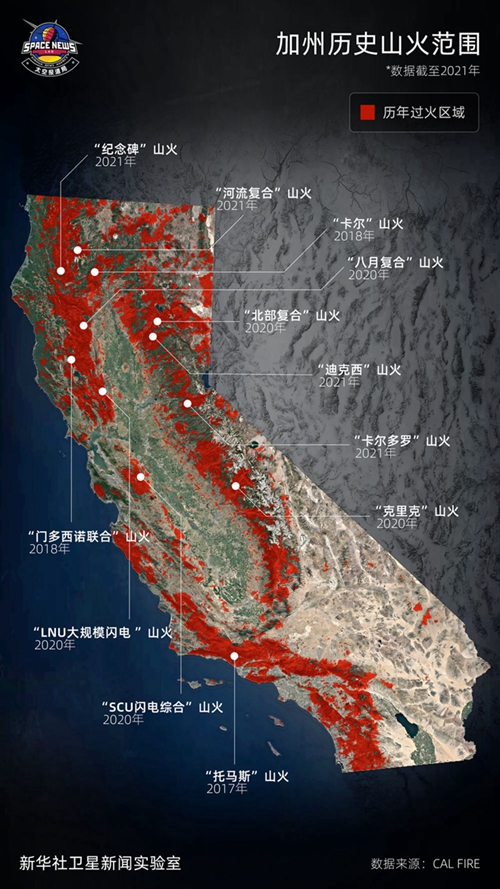 几十年来,夏季的加州经常野火肆虐,以持续蔓延的山火为主。但近年来山火的破坏性在加剧。据加州林业和消防局统计,该州历史上规模最大的20场山火中有12场发生在过去5年间,共计烧毁加州总面积的4%,相当于整个康涅狄格州。