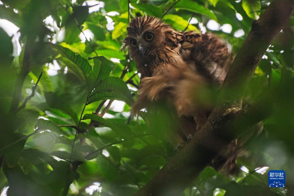 在新加坡双溪布洛湿地保护区拍摄的马来渔鸮(1月4日摄)。