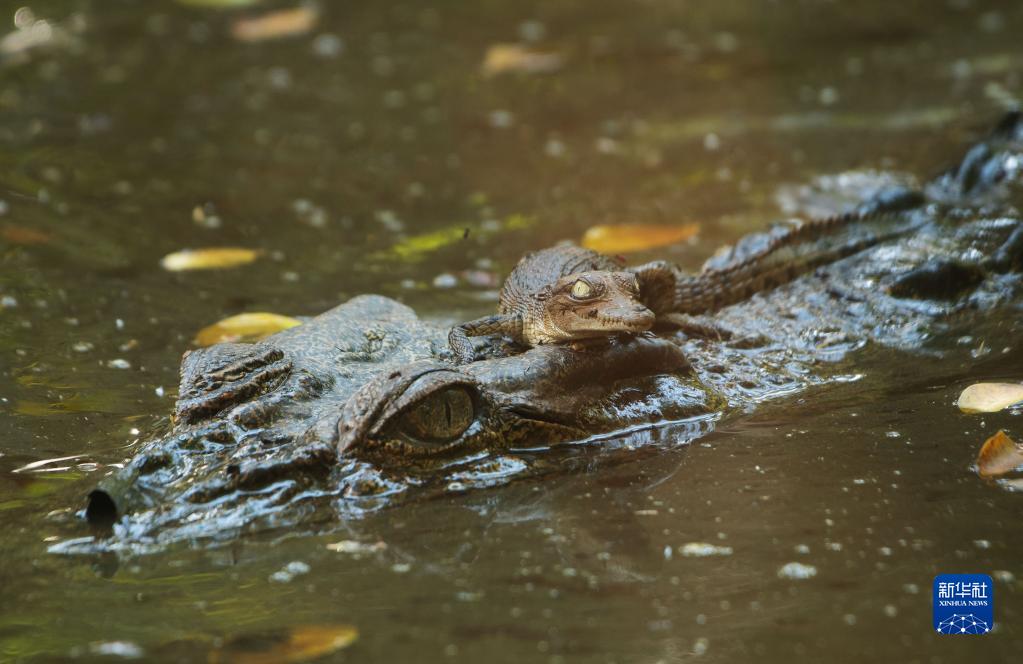 在新加坡双溪布洛湿地保护区拍摄的咸水鳄鱼(6月26日摄)。