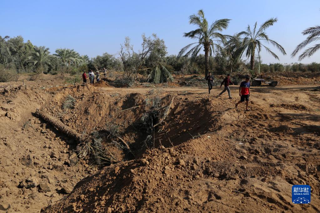 11月4日,人们查看位于加沙地带中部的遭以军空袭破坏的区域。新华社发(亚西尔摄)