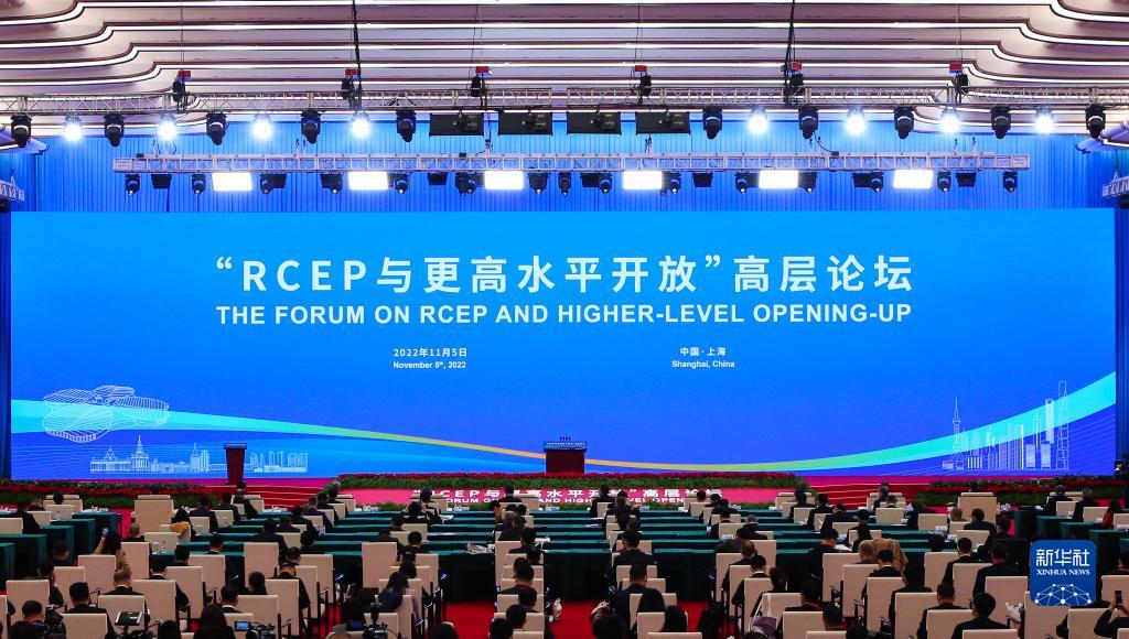 11月5日,第五届虹桥国际经济论坛中最重要的活动之一,“RCEP与更高水平开放”高层论坛在上海举行。新华社记者 李京 摄