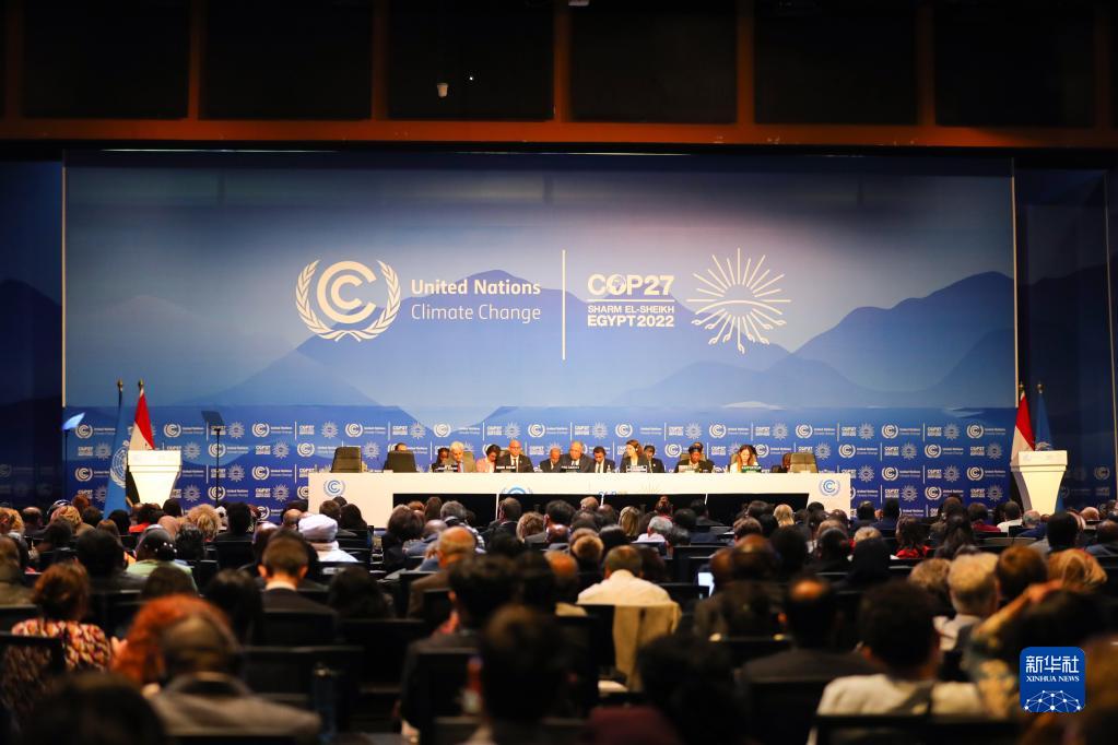这是11月6日在埃及沙姆沙伊赫拍摄的《联合国气候变化框架公约》第二十七次缔约方大会(COP27)开幕现场。新华社记者 隋先凯 摄