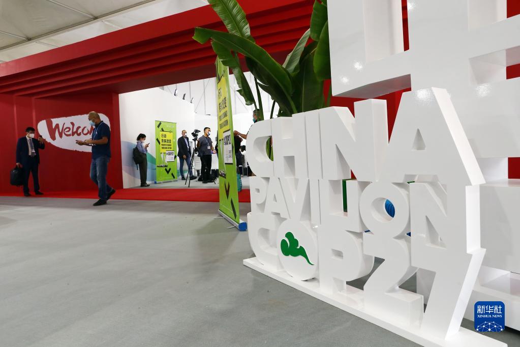 这是11月6日在埃及沙姆沙伊赫举行的《联合国气候变化框架公约》第二十七次缔约方大会(COP27)上拍摄的中国角。新华社发(艾哈迈德·戈马摄)