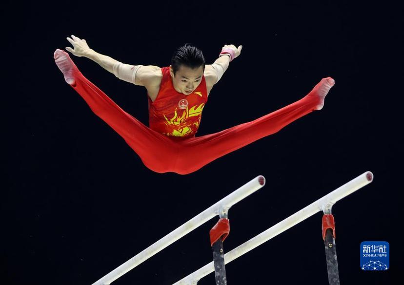 11月6日,邹敬园在比赛中。当日,在英国利物浦举行的2022体操世锦赛男子双杠决赛中,中国选手邹敬园夺得冠军。新华社记者 李颖 摄