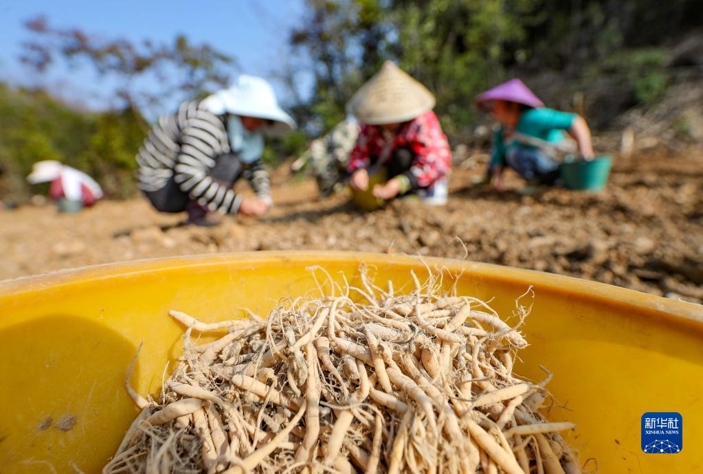 11月7日,贵州省黔东南苗族侗族自治州岑巩县天马镇天马村,村民在种植太子参。