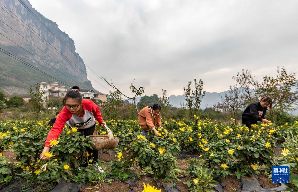 11月7日,村民在贵州省黔西市大关镇丘林村采摘金丝皇菊。