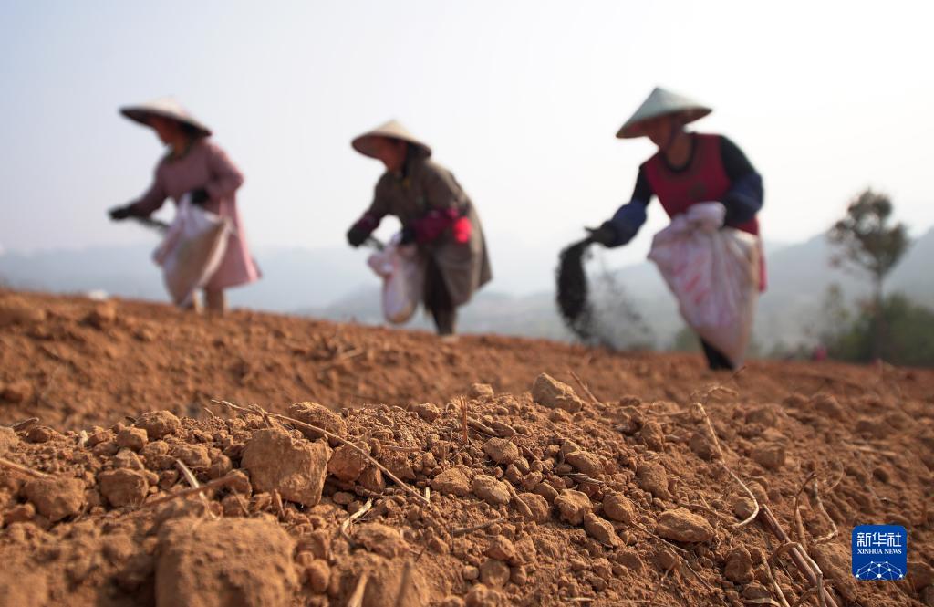 11月7日,贵州省黔东南苗族侗族自治州丹寨县兴仁镇摆泥村,村民在太子参苗地施肥。