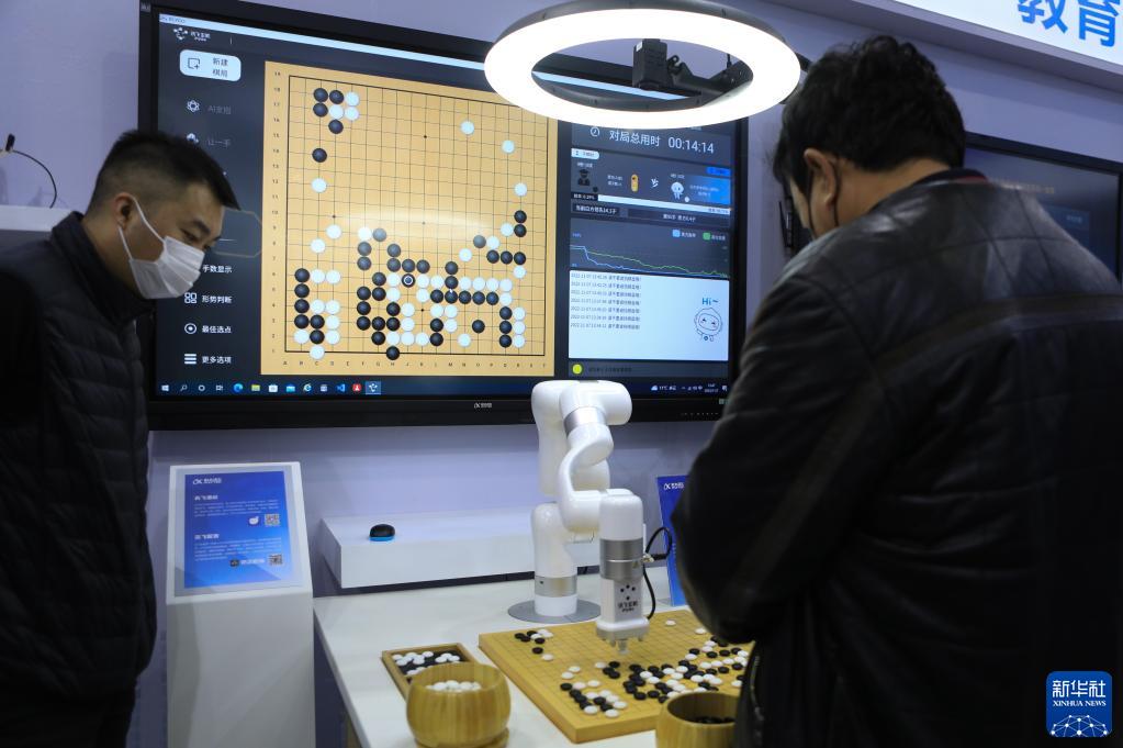 11月7日,参会人员体验玄机弈棋机器人。