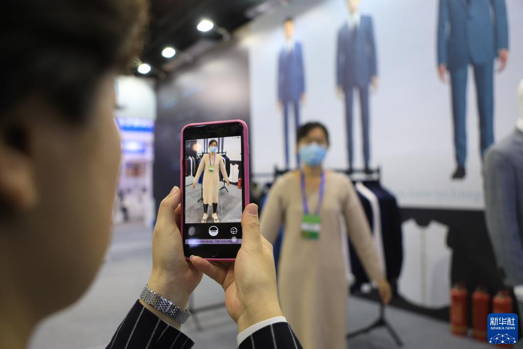 11月7日,参会企业工作人员演示服装定制工业互联网平台。