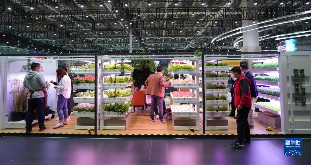 在第五届进博会的食品及农产品展区,光明母港(上海)种业科技有限公司将集装箱植物工厂的模型搬进展会,在超市货架般的装置上一层层排列种植蔬菜,现场展示智慧农业的新发展模式。
