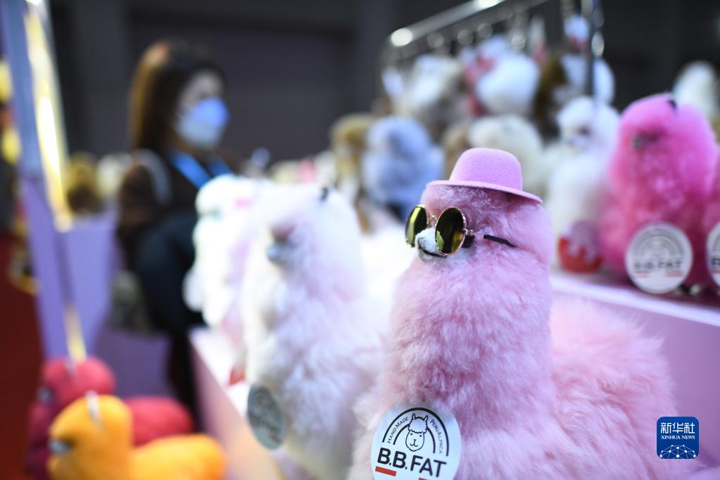 在第五届进博会上,来自澳大利亚、新西兰和秘鲁的展商“不约而同”展出羊驼毛制品,蓬松柔软、形态各异的动物玩偶在展台“列队”,吸引大批观众前来交流洽谈,为进博会增添一抹可爱的亮色。
