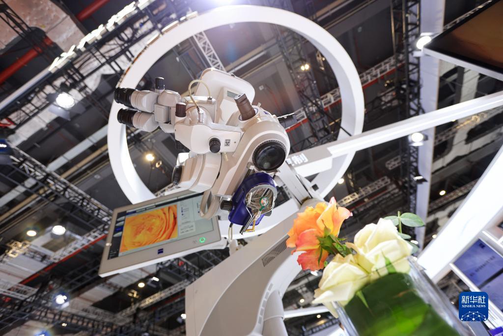 11月6日在第五届进博会蔡司展台拍摄的眼科导航手术显微镜。