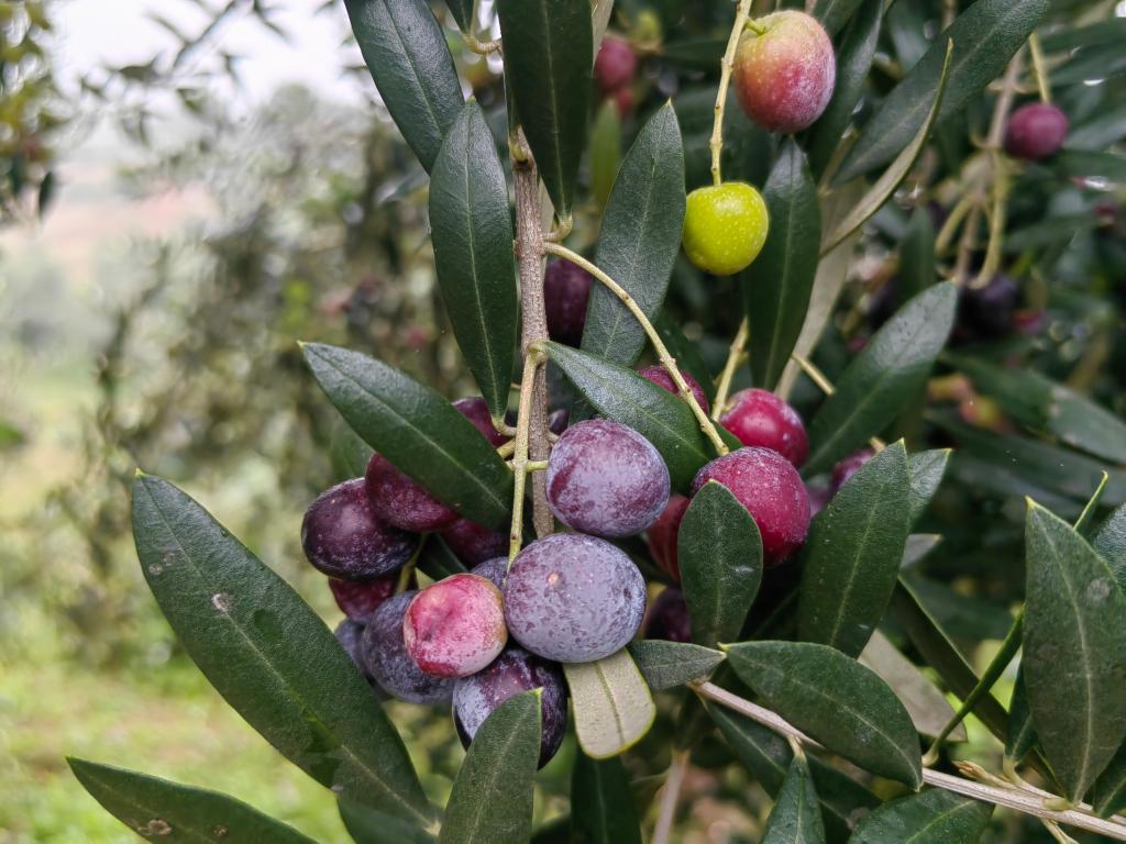 走进四川成都市金堂县淮口街道龚家村,漫山遍野的油橄榄树果实累累,红红绿绿的果子挂满枝头,村民们正忙着采摘已经成熟的油橄榄果。