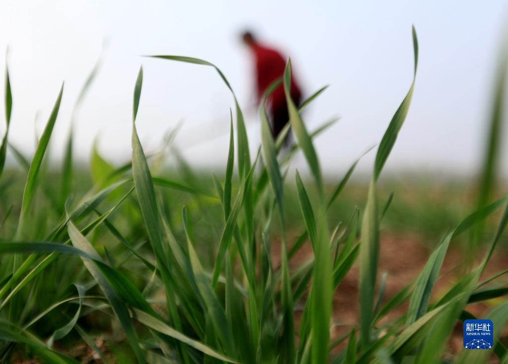 11月8日,在山东省临沂市平邑县地方镇东家庄村,村民在田间管护小麦。