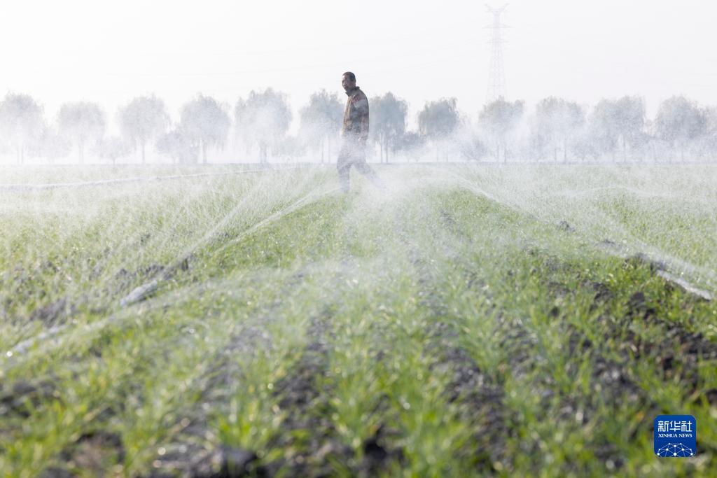 11月8日,河北省唐山市丰南区岔河镇王各庄村农户在田间为冬小麦浇水。