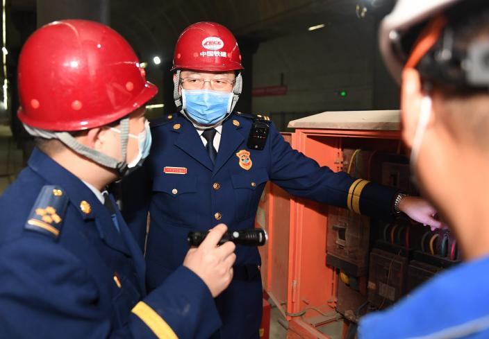 11月3日,消防员对一处正在施工中的地铁站进行安全检查。新华社记者 张晨霖 摄