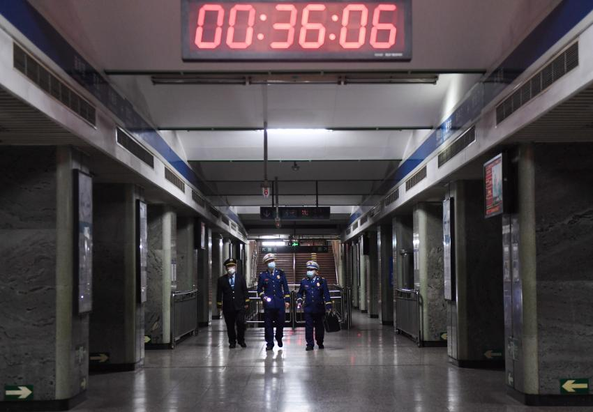 11月4日凌晨,消防员来到一处地铁站进行检查。新华社记者 张晨霖 摄