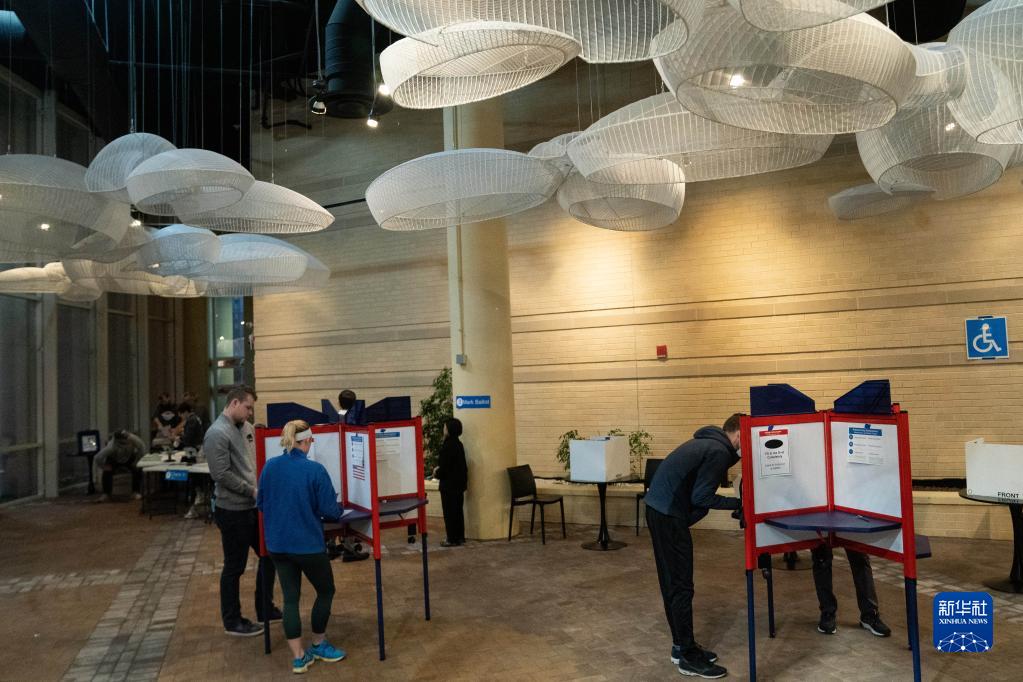 11月8日,选民在美国弗吉尼亚州阿灵顿的一处投票点参加中期选举投票。新华社记者 刘杰 摄