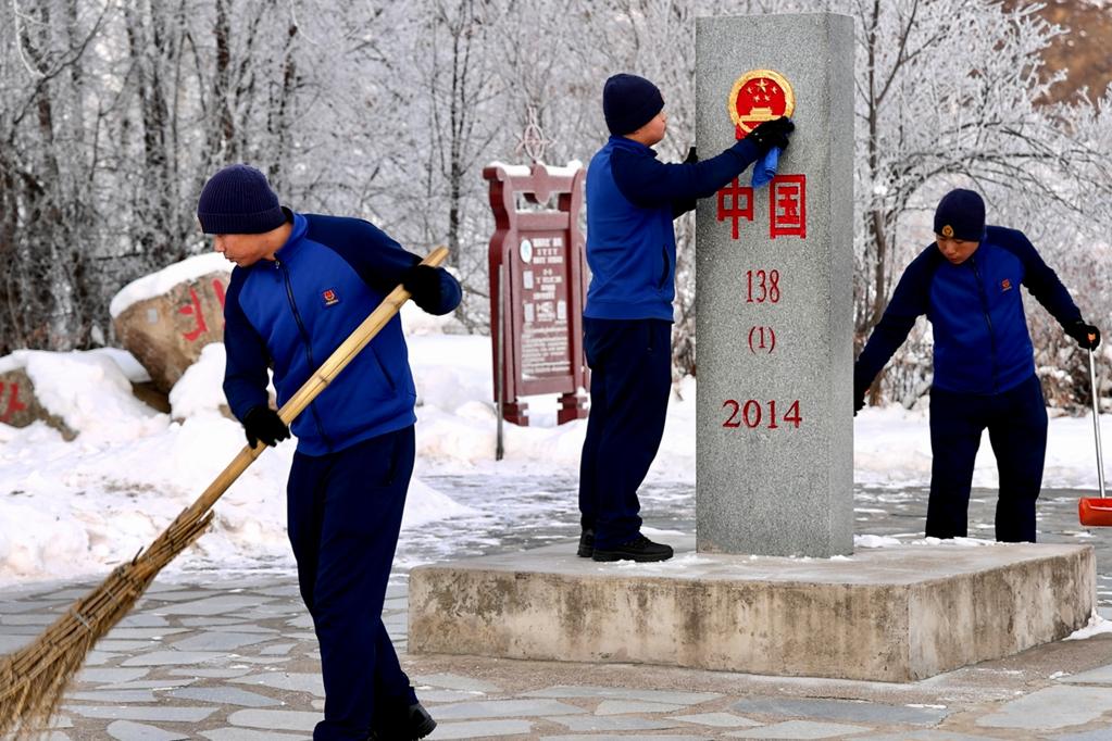 熟练而凝重地擦拭着界碑上的积雪,古誓言感慨道,5年来,这座138号界碑伴他们度过无数个清晨,“界碑见证我们风霜中的历练,也坚定了我们驻扎‘极北’、守护百姓的信念。”