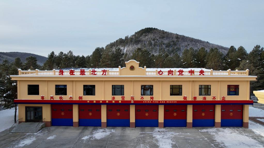 图为位于冰天雪地中的北极村消防救援站。(受访单位供图)