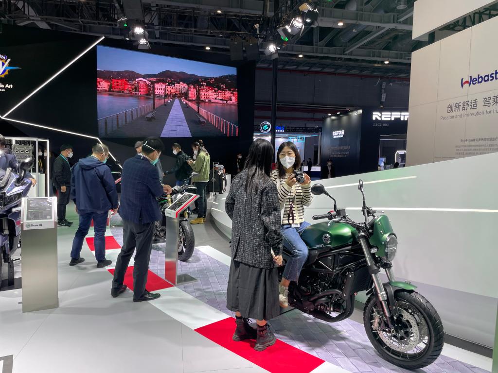 体验摩托车的观众。新华社记者 王辰阳 摄