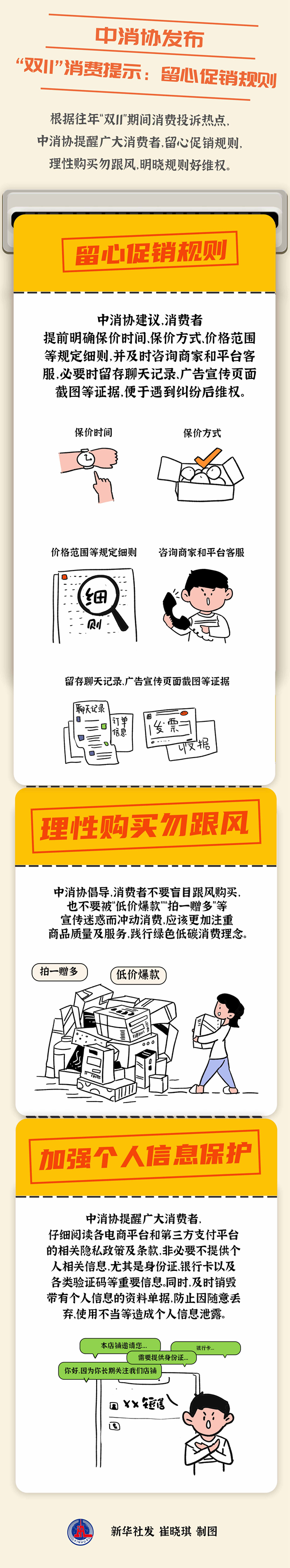 新华社北京11月9日电 题:中消协发布“双11”消费提示:留心促销规则