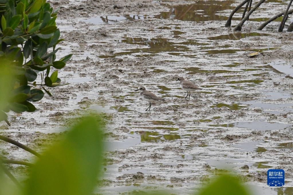 11月8日在海南省儋州市新英盐场湿地拍摄的水鸟。新华社记者 蒲晓旭 摄