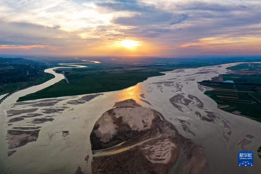 这是在山西省运城市芮城县拍摄的黄河风陵渡段风光(2022年6月18日摄,无人机照片)。新华社发(肖永杰 摄)