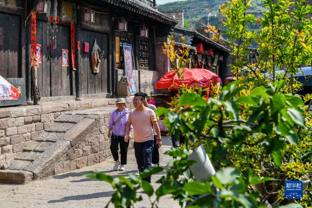 游客在被誉为“九曲黄河第一镇”的山西省吕梁市临县碛口古镇游玩(2022年5月25日摄)。新华社记者 曹阳 摄