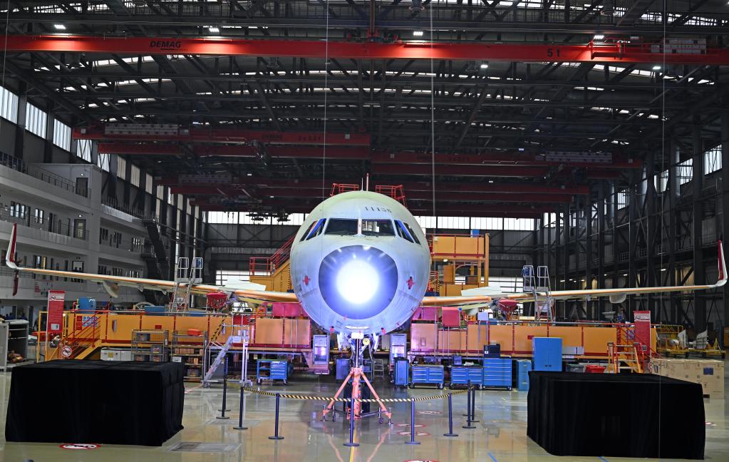 新华社天津11月9日电(记者张宇琪 梁姊)9日16时,天津自贸试验区机场片区空中客车公司厂房内,在主持人“3、2、1”的倒计时计数之后,红布落幕,一架即将开始总装的飞机展现在眼前。从这一刻起,空客公司设在亚洲的唯一总装线正式投产A321机型。