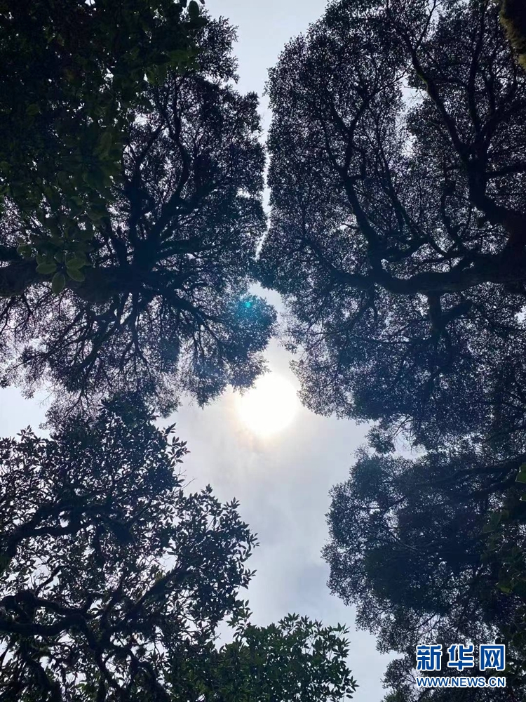 在保护区驻守了二十年,对于这里的一些景观,王华生了如指掌。“你抬头看看这两棵千年铁杉树,像极了一对情侣。”铁杉是冰河时期孑遗树种,被称为植物王国的“活化石”,也是猫儿山的镇山之宝。在漓江源附近的这两棵千年铁杉,彼此生长,互不干扰,树冠与树冠之间留有微小的缝隙,从地上仰望,就像一对情人相互依偎。