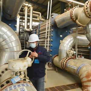 11月10日,石家庄市旭城花园供热站工作人员在查看供暖设备运行情况。