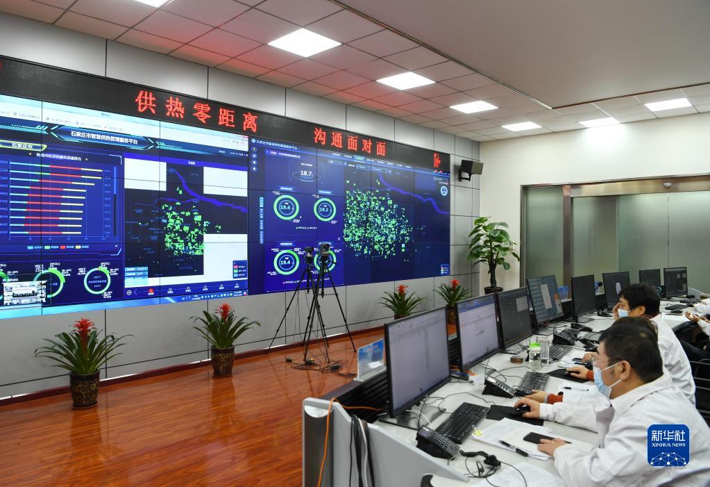 11月10日,石家庄市供热调度指挥中心的工作人员在监测供热系统运行情况。